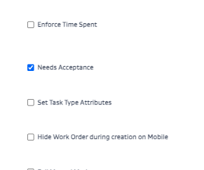 In the Task Type Template, check Needs Acceptance. This enables the task type to go through an accept/reject workflow.
