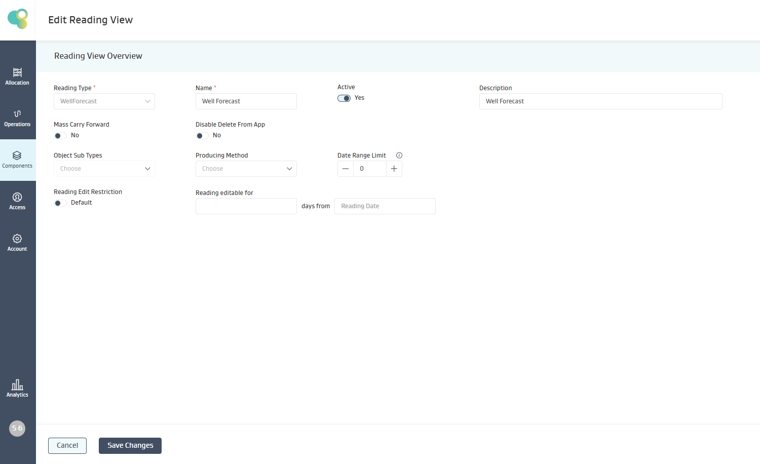 Date Attribute: By default the restriction is enforced taking the “Reading date” into consideration. In some cases, the reading-view may have other date attributes such as “production date”, “end downtime date”, “ seal on date” etc, and the Admin may want to use these date values to incorporate a restriction on editing a reading.