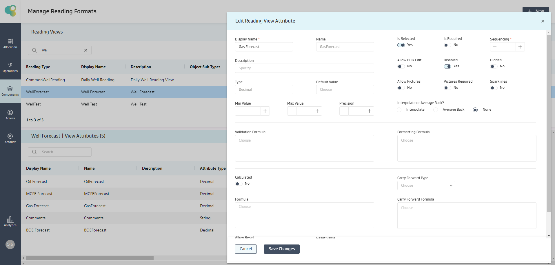Calculation Formulas : This formula is used to calculate the value to populate/save for the attribute when a reading is created, edited and saved.