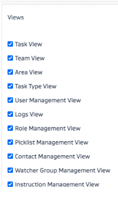 Views: This is where you can select which screens from the application you want the role to have basic read access to.