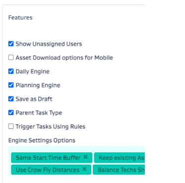 Features: This is where you select the features and the engine settings the role has access to.