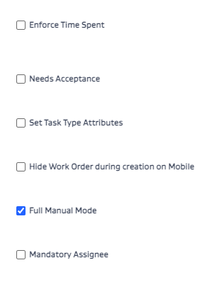 To remove this logic from the task type, go to the task type template and check Full Manual Mode.