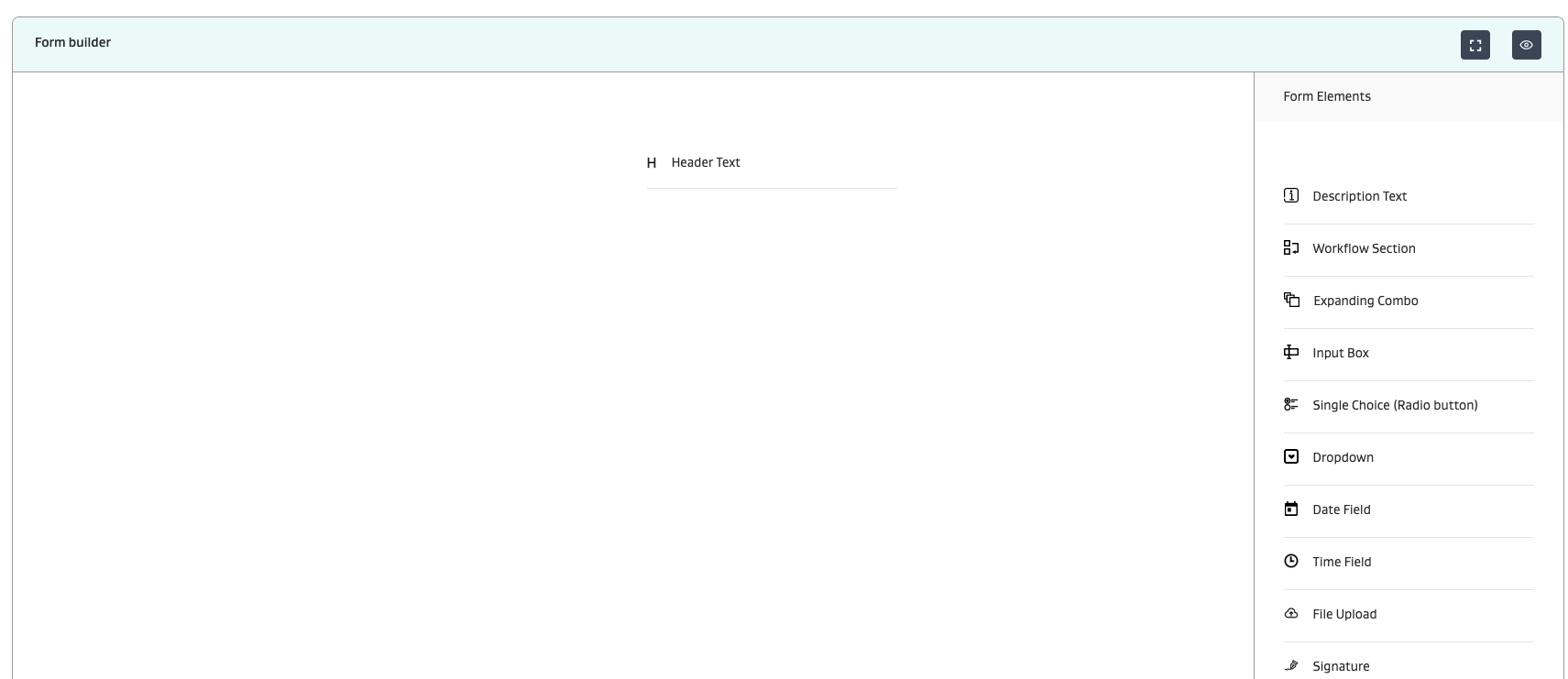 On the form builder canvas, start dragging and dropping Form Elements into the canvas. Then click Create Form