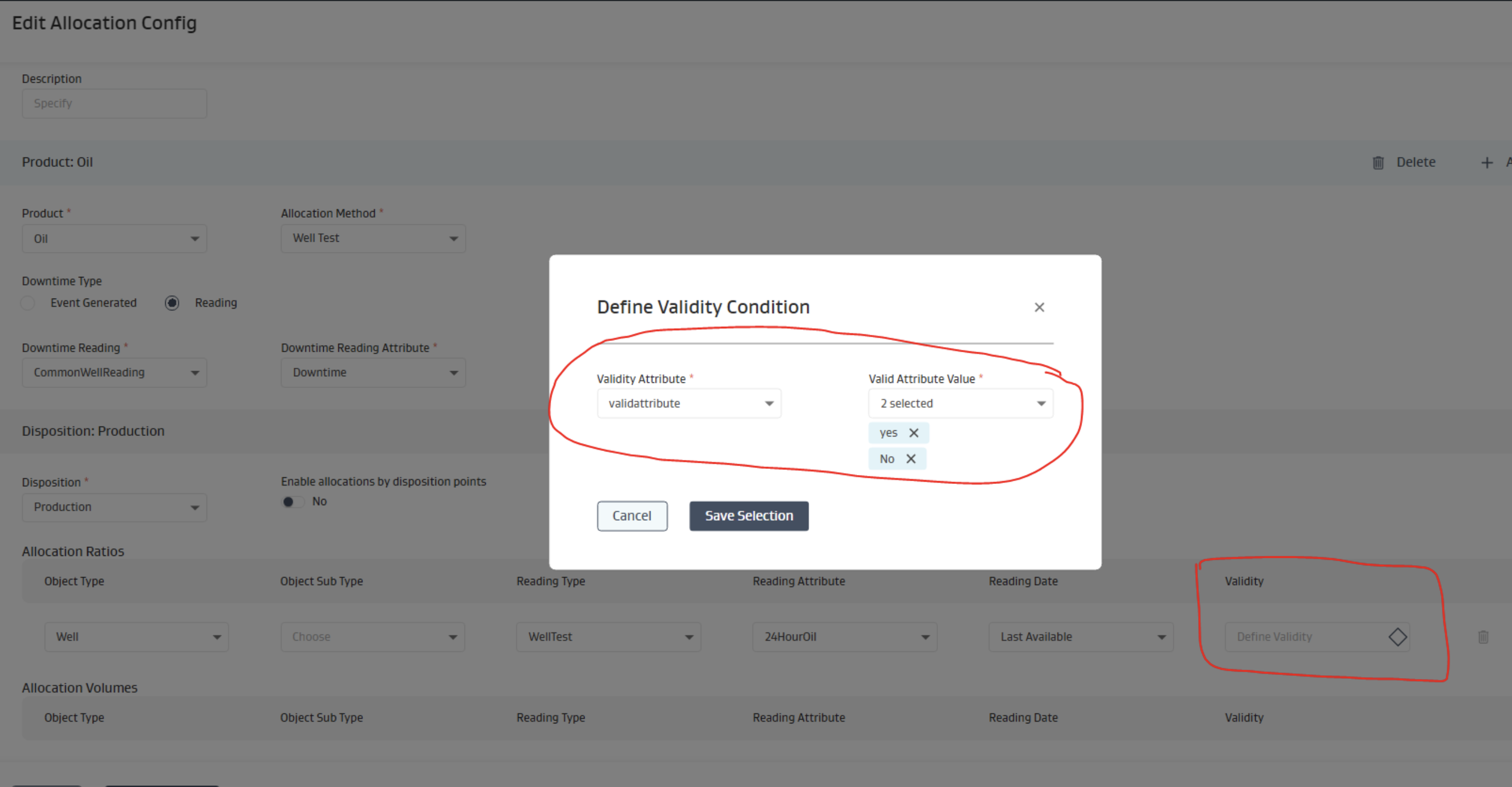 Well Test (Marked valid and invalid for allocations)
