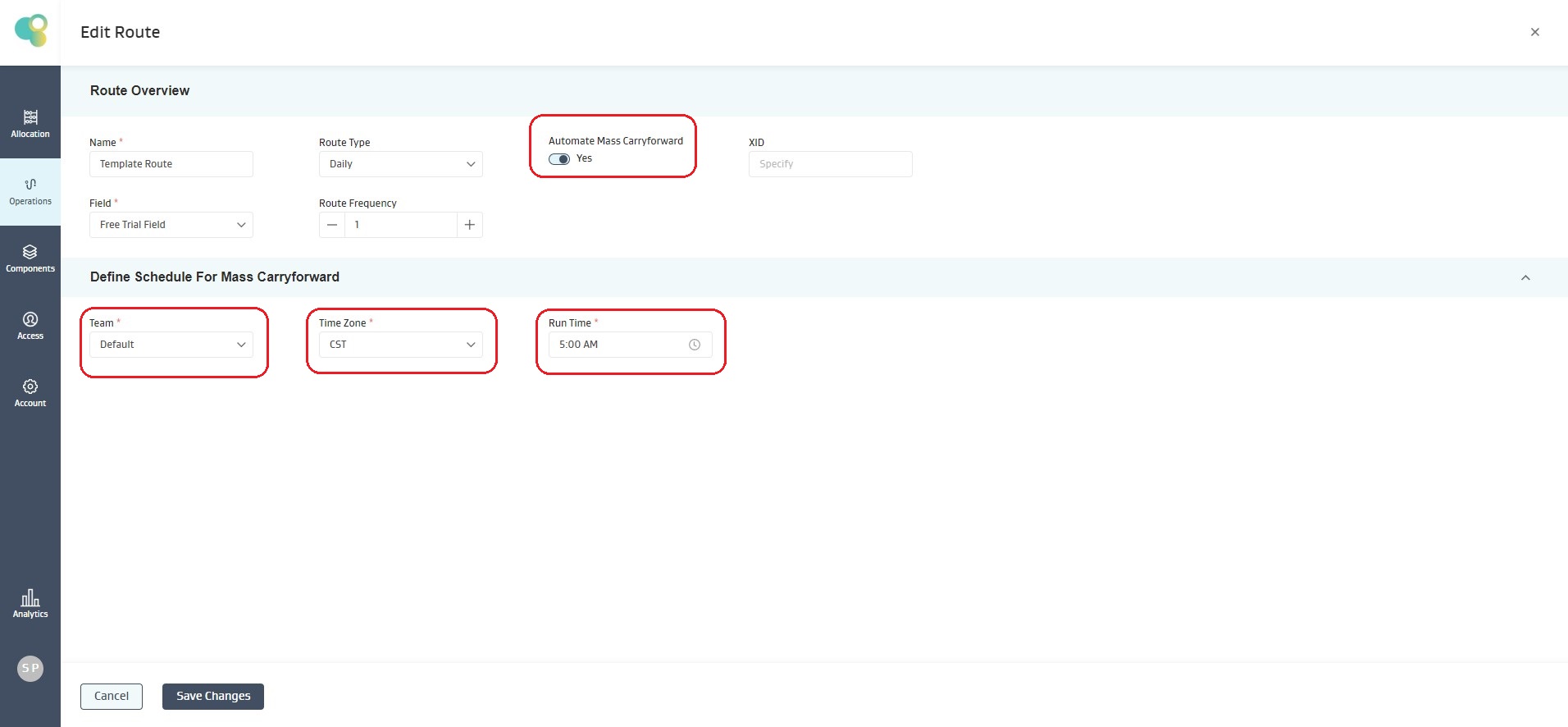 Once the above two settings are taken care off, you would be able to configure MCF for each and every route in your account. You would be able to view the below shown settings once you have the above configuration enabled for your account.