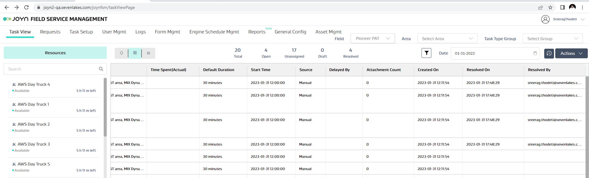 3 | Resolved by User Name and Task Resolved Date fields display data | Admin | ![]() | |
