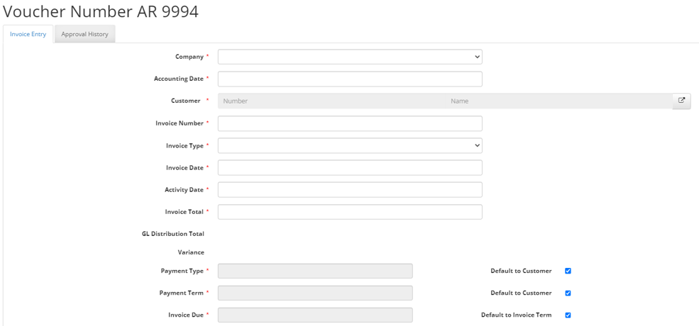 Fill in the header data to correspond with the AR Invoice created: