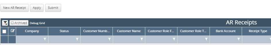 Under Accounts Receivable>AR Receipts click the New AR Receipt button.