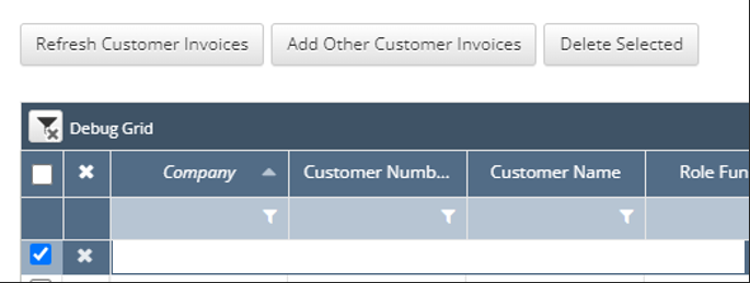 If all open invoice amounts were not written off, delete any invoice lines that need to be left with a balance by selecting the line and clicking the Delete Selected button.