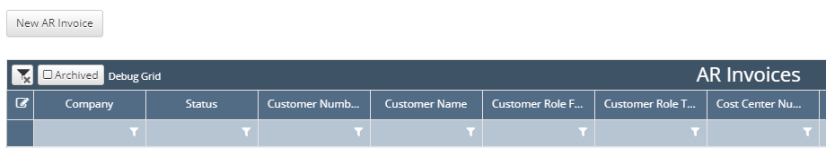 Once Customers and Amounts are verified, click Create New AR Invoice at the top of the AR Invoices screen.