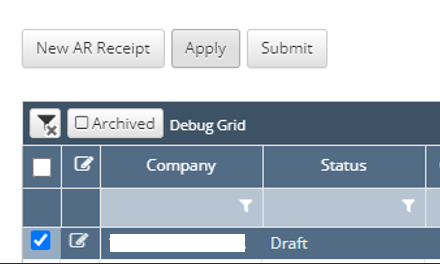 Confirm the Amount To Apply column in the AR Invoices grid equals $0.00 in total: