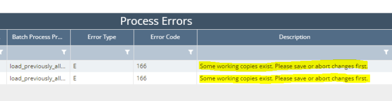 When a user tries to upload PAV data using the upload template, users sometimes receive an error stating ‘Some working copies exist. Please save or abort changes first’. This indicates that another user is making edits on the Physical Setup - Previously Allocated Volumes screen.