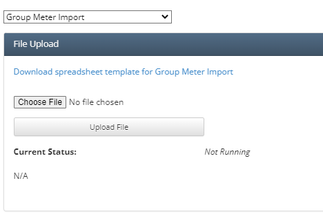 Click the link below File Upload to download the most recent template for uploading Group Meters.